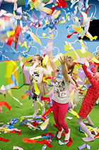 Фантастическое зрелище – серпантиновый дождь вперемешку с потоками вихрей из белоснежной бумаги.